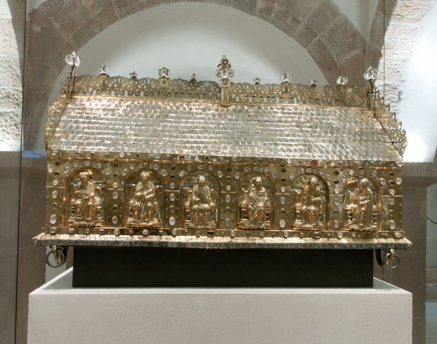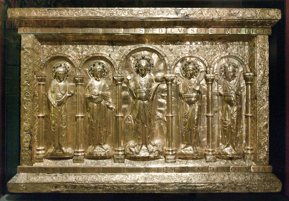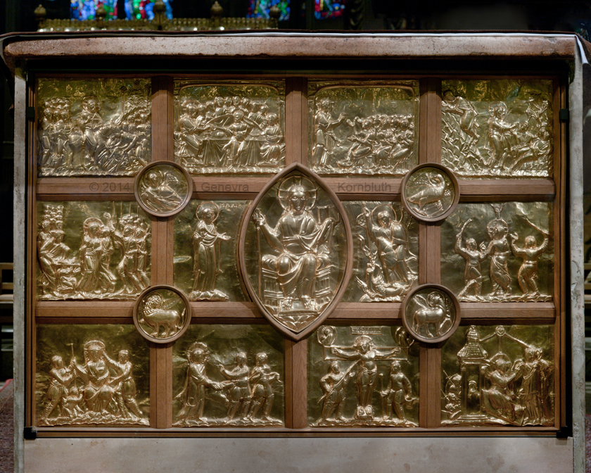 gold altar frontal, early 11th c., Aachen cathedral. The altar and cathedral have their own pages.