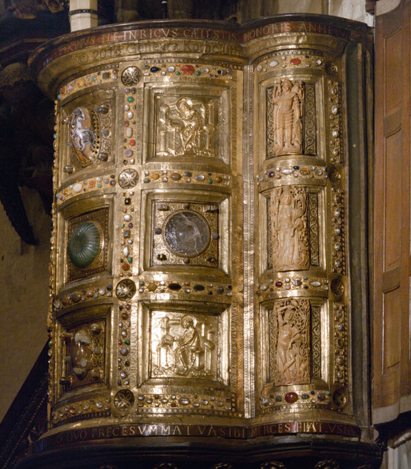 Ambo of Henry II, 1002-1014, Aachen cathedral. The ambo and cathedral have their own pages.
