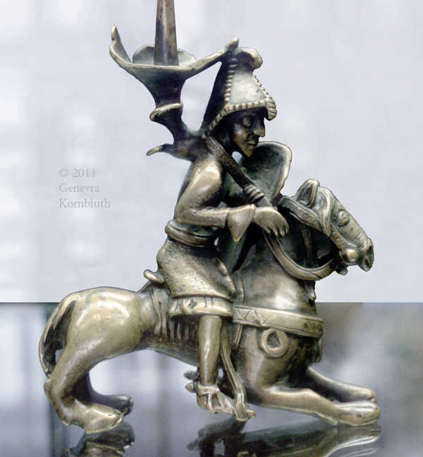 candle-stick in the form of a mounted knight, Lotharingia? late 12th c., KGM 85.56. For another view see Berlin.