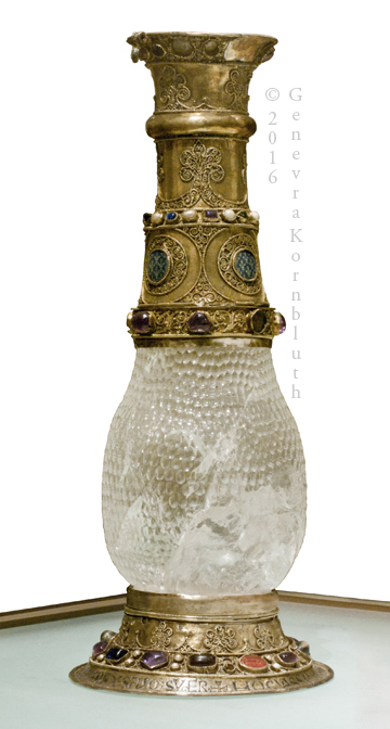 Eleanor Vase, metalwork 1137-47, Sasanian or Islamicate crystal vessel, Louvre MR 340. This work has its own page.