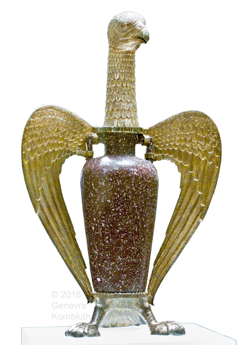 Eagle of Suger, porphyry/silver gilt, Île-de-France bef. 1147, Louvre MR 422, which has its own page