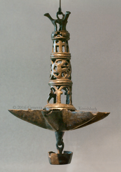 oil lamp, copper alloy, traditional Jewish shape, 12th c., MoL 1374. For details see MoL.