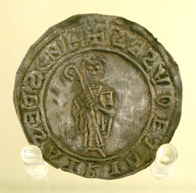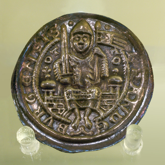 St. Michael and dragon, citation seal of the chapter of Veszprém cathedral, cast bronze, 11th-c. Hungary, HNM 1890.127.10