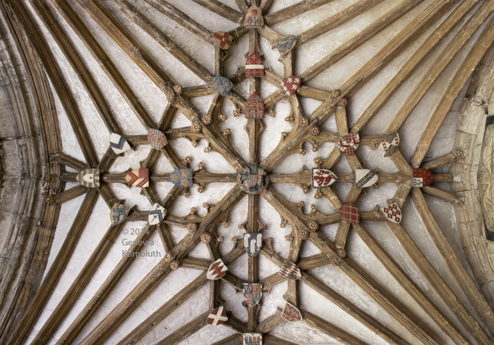 Heraldic shields in vaults, 15th c., Canterbury cathedral cloister, which has its own own page.