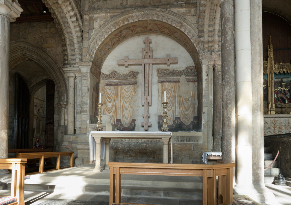 painted drapery prob. 15th c., Galilee, Durham Cathedral, which has its own pages