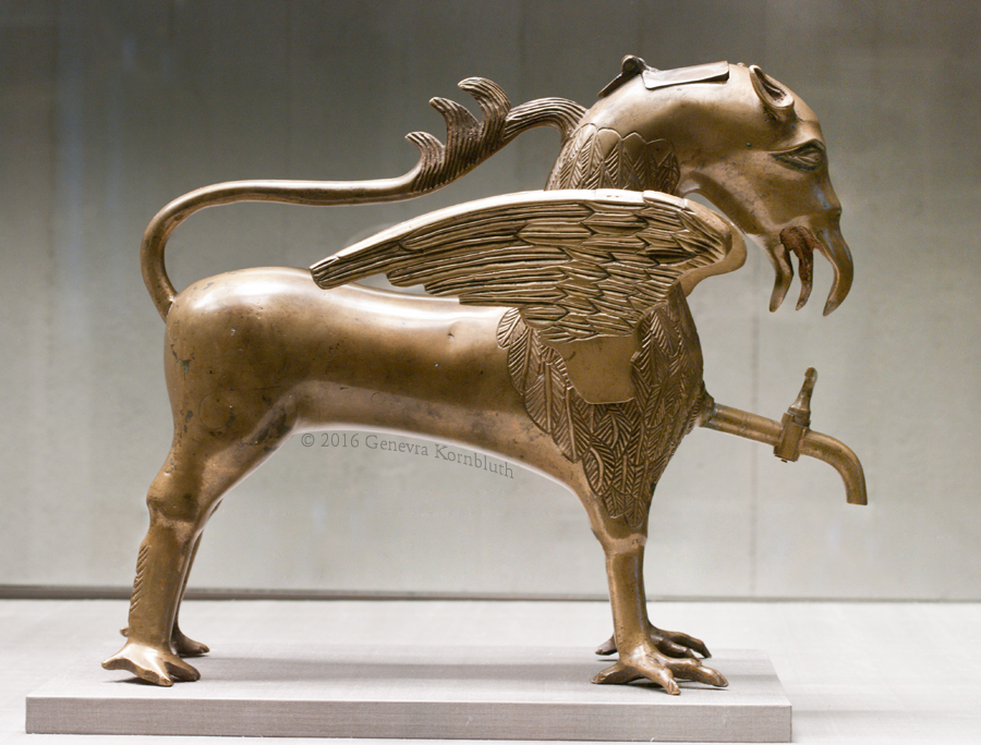 griffin aquamanile, copper alloy, Nürnberg 15th c., KGM 90,429. For other views see Berlin.