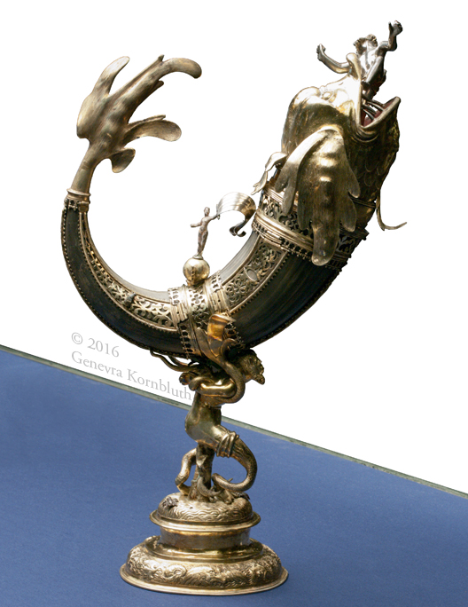 Jonah and the whale drinking horn, buffalo horn and silver, Germany 15th c., KGM K3886, which has its own page
