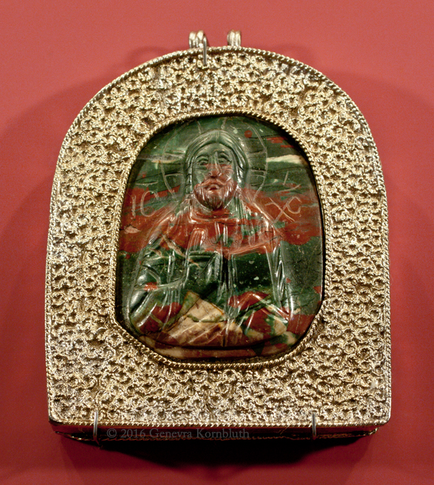 Christ Pantokrator: 15th c. Novgorod silver gilt mount with 12th c. Byzantine jasper cameo, Novgorod AM