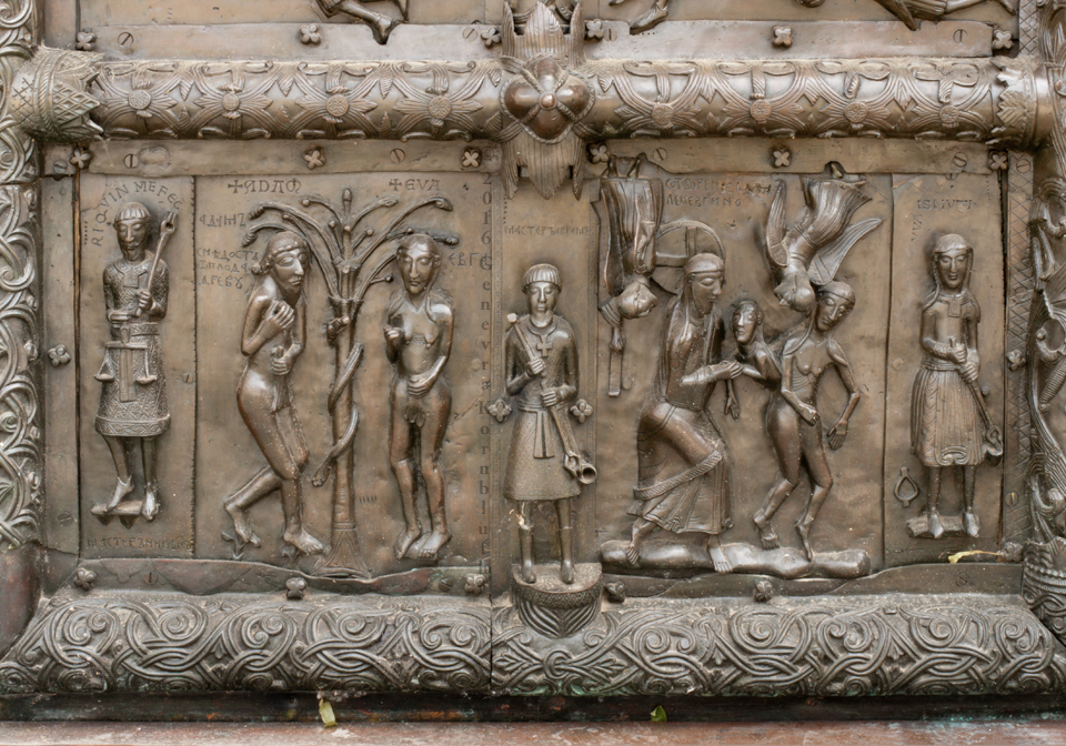 lower border and poss. center figure 15th c., on Novgorod cathedral doors, bronze, prob. 1152-54. The doors have their own page.