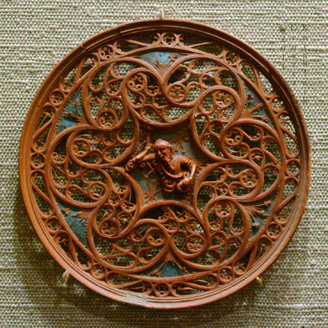 rosette for a musical instrument, boxwood on velvet, 15th c., poss. north Italy, PMA 1930-64-29