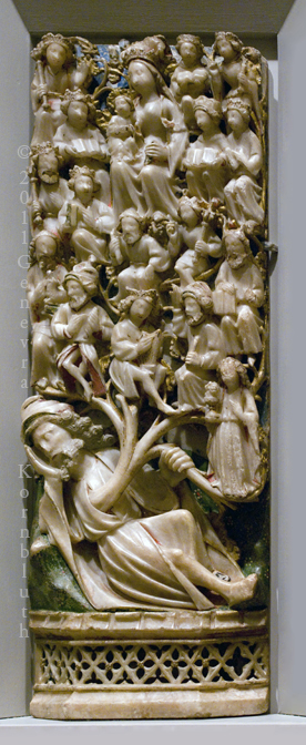 Tree of Jesse, alabaster with paint and gilding, 15th c. Nottingham, PMA 1945-25-108 (pair with 1945-25-107)
