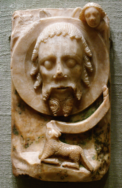 head of John the Baptist on a charger, alabaster with traces of polychrome, 15th c. Nottingham, PMA 1962-67-8