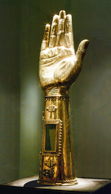 Arm reliquary Charlemagne, c.1481, silver gilt/gems/enamel, AachenCT. This work has its own page.