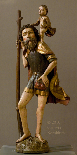 Saint Christopher from Partenheim parish chruch (Rheinhessen), polychromed wood, c.1490, LMM O,1362. For additional views see Mainz.