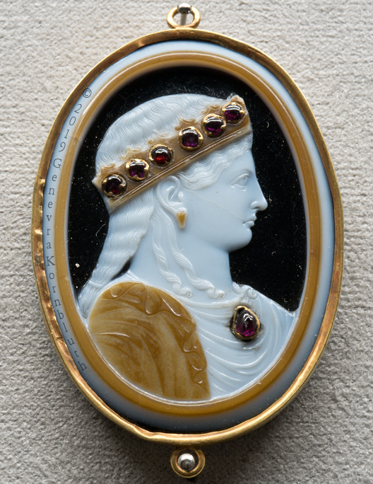 Crowned woman, prob. late 15th c., or Antonia Minor 1st c., sardonyx cameo, Florence MA 14553