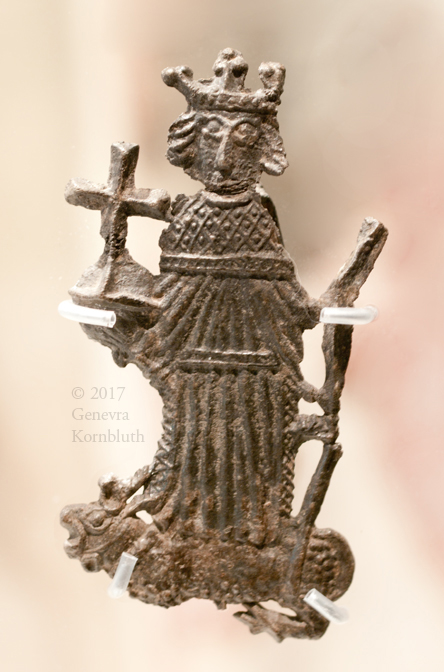 King Henry VI (Henry of Windsor, as saint?) with orb and scepter, antelope at feet, late 15th c., lead alloy, MoL 85.79/6