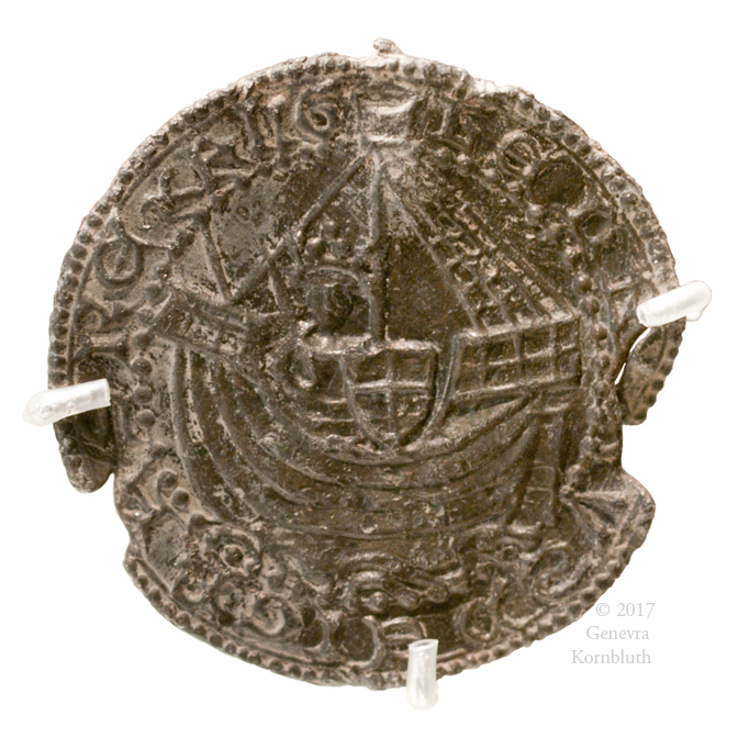 King Henry VI (Henry of Windsor, as saint?) on a ship, late 15th c., lead alloy (imitation gold coin), MoL 75.1/3