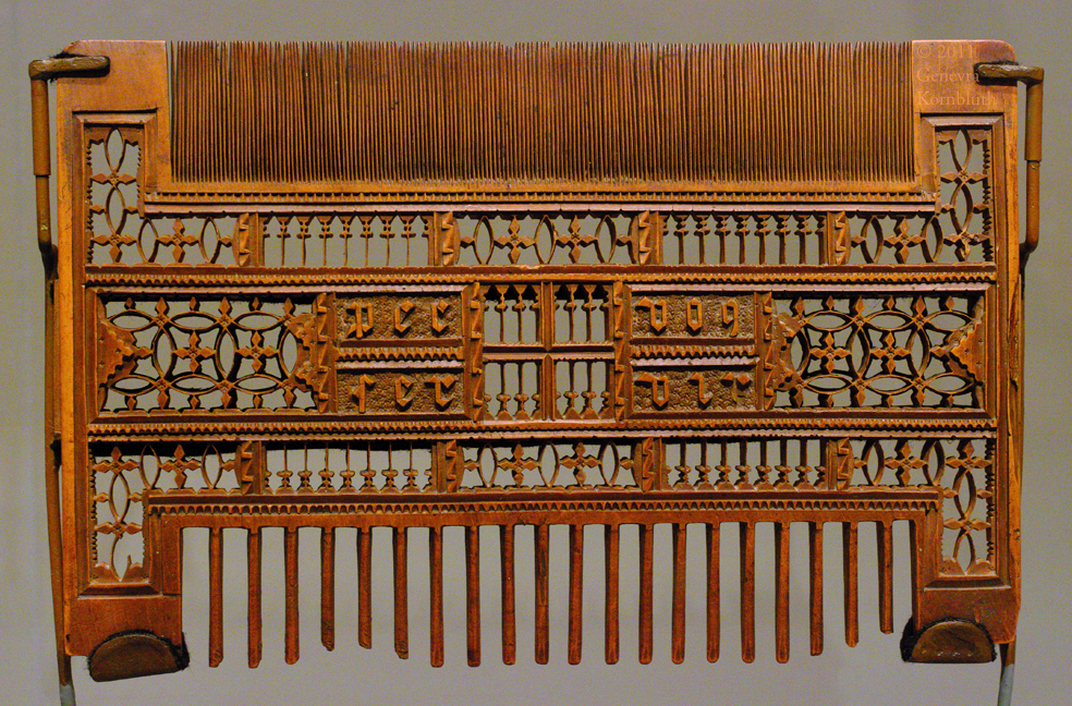 comb, boxwood, France c.1475-1525, French inscription "per voz servir", PMA 1930-64-75