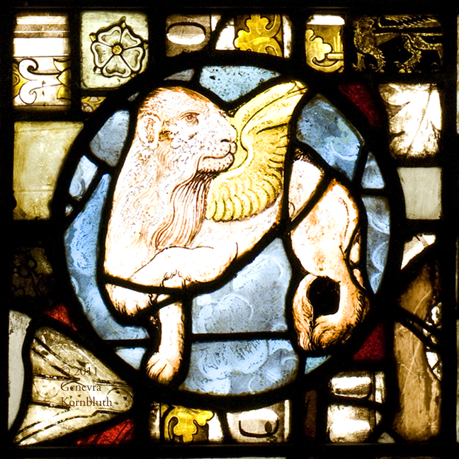 symbol of St. Mark, stained glass in composite window, late 15th c. France, PMA 1929-131-1. Not available at higher resolution.