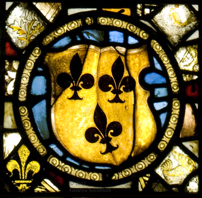 shield with arms of the Fors family, stained glass in composite window, late 15th c. France, PMA 1929-131-1. Not available at higher resolution.