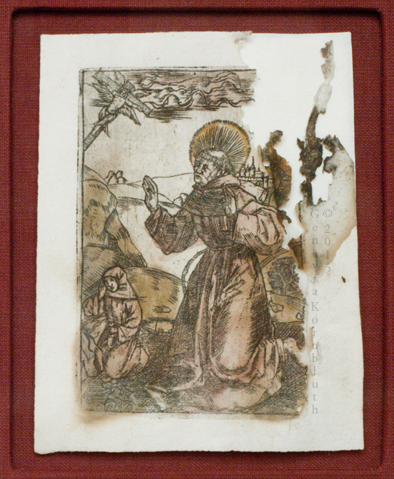 Stigmatization of St. Francis, copper engraving on paper, Netherlandish c.1500, WienMus