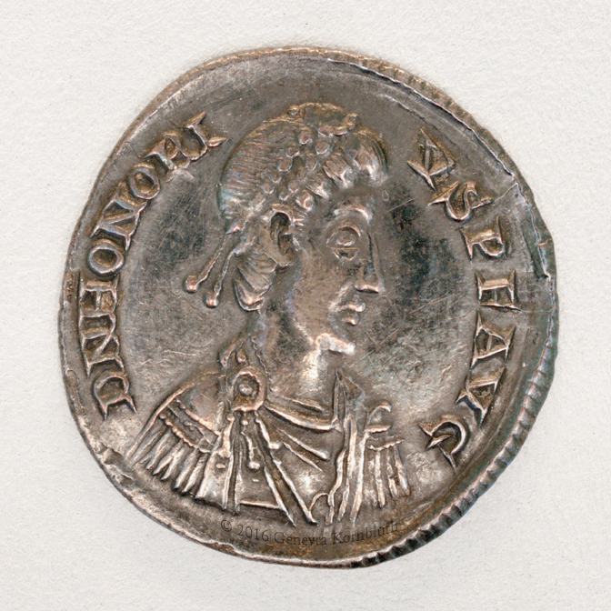 solidus of Honorius, gold, 384-423, DO. For detail and reverse see DO.