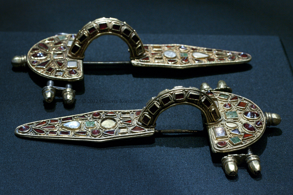 bow fibulae from Untersiebenbrunn, silver/gold/garnets/glass/enamel, early 5th c., KHM U1. For detail see KHM.