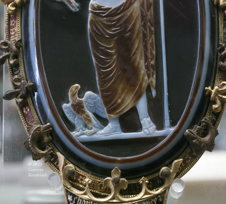 Jupiter with eagle (Camée de Chartres), c.25-50 CE sardonyx cameo in enameled gold 14th-c. mount reworked 1793, CdM Chab. 4