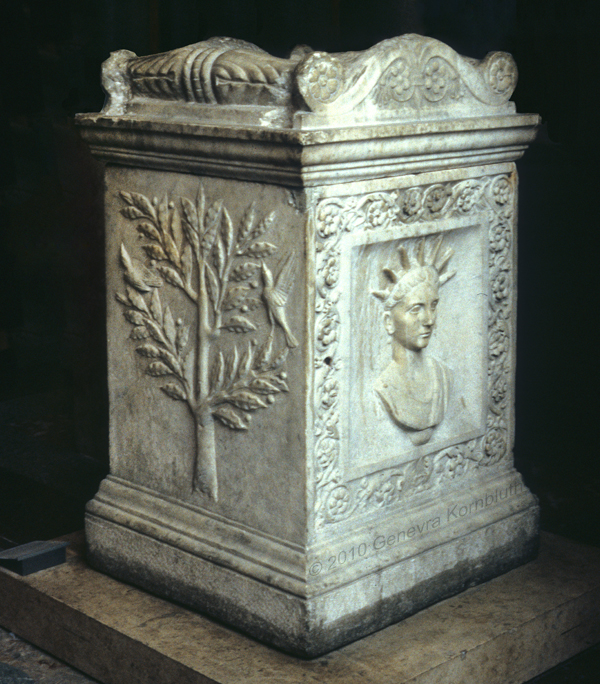 funerary altar of Julia Victorina from Rome, marble, 75-100 CE, Louvre MA 1443