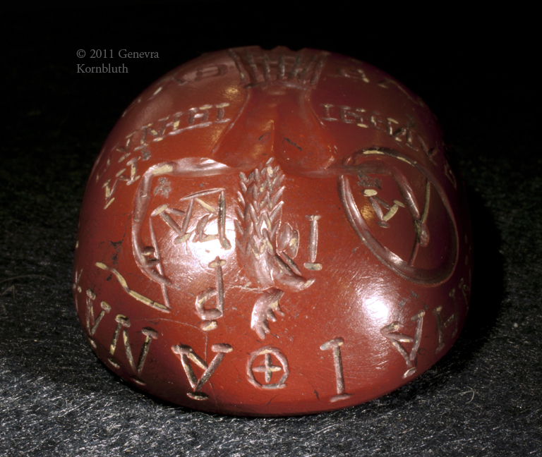 Historical Archive: Intaglio with Abrasax and Chnoubis jasper, 3rd century, 43.6 x 28.2 x 14.4 mm Lewis Collection, Fitzwilliam Museum, Cambridge