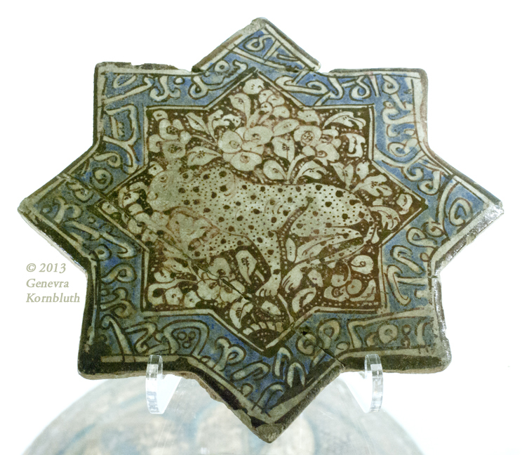 Cheetah in foliage, Ilkhanid (1256-1353) molded fritware tile, Kashan (Iran), UMMA 1957/1.73
