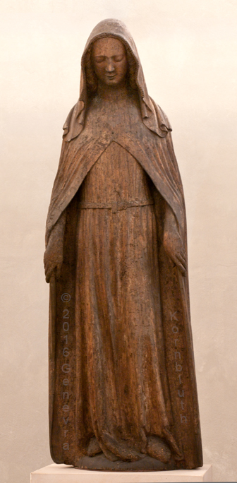 Mary fr. Annunciation or Visitation, willow wood c.1300, BNM 14/134. For other views see BNM.