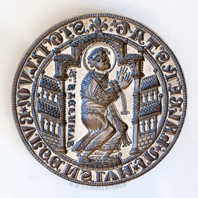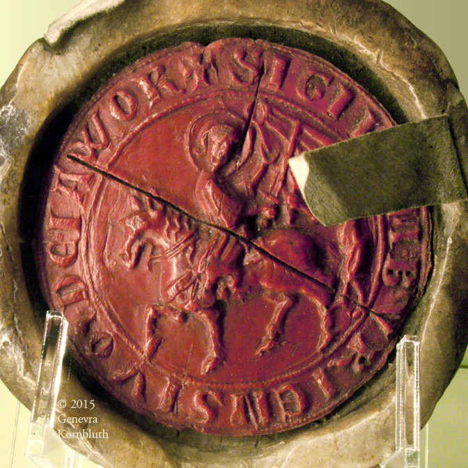city seal of Jawor: St. Martin, Poland c.1300-50, MNW 116255. For view with all wax see MNW.