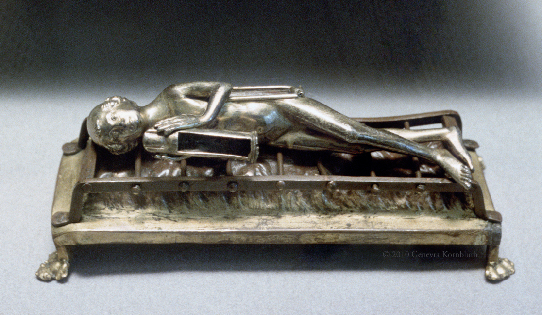 reliquary of St. Lawrence's finger, late 13th to early 14th c. France, copper and gilded silver, Louvre