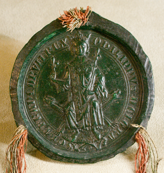 seal imprint of King Philippe IV le Bel of France, c.1300, Cl. 22297, Cluny: Louvre OA 6301. For full cords see Cluny.