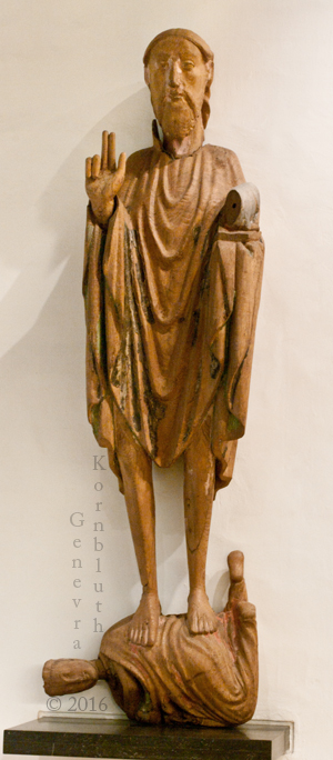 John the Baptist trampling Synagogue, oak/polychrome c.1300, Ørslev church, NMD. For other views see Copenhagen.