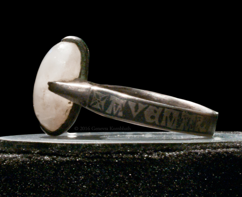 silver/chalcedony ring with AVEMARIA, from grave prob. 1302, OHM C4547a, which has its own page