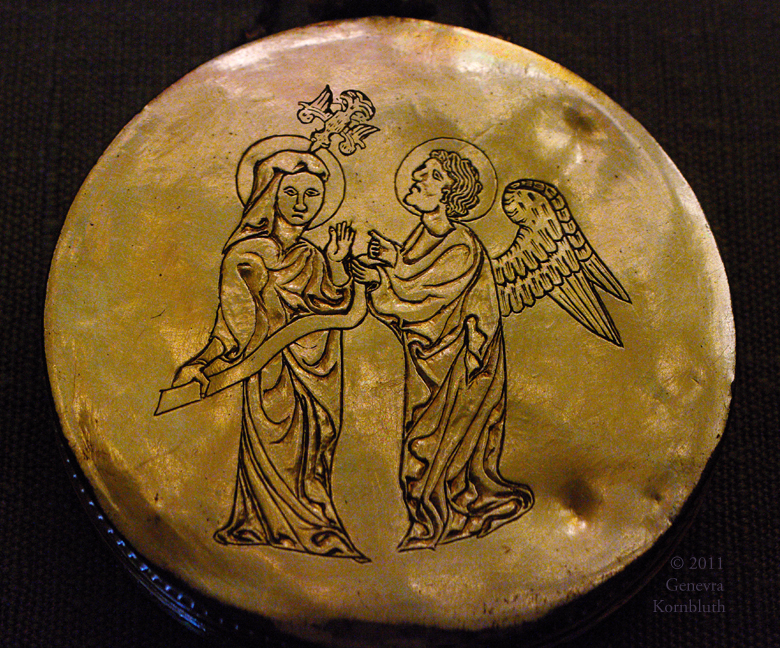 pendant reliquary with Annunciation from Guelph Treasure, silver gilt, Brunswick 1300-25, PMA 1931-24-1. For other views see PMA.