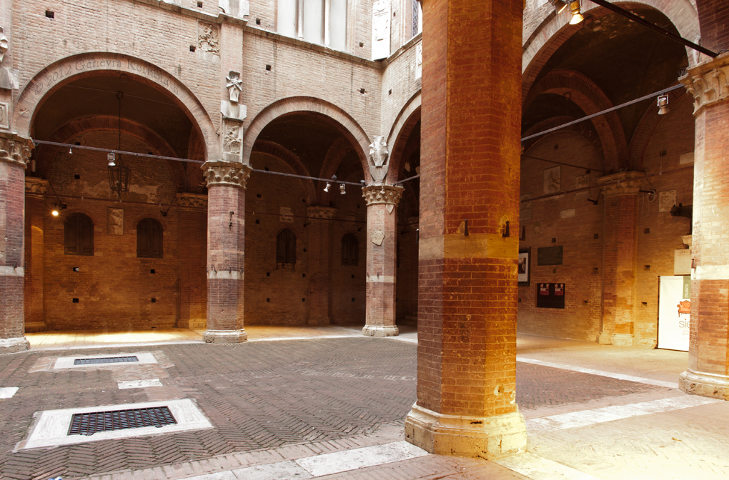 Cortile del Podesta (courtyard) 1325, Palazzo Pubblico, Siena, which has its own exterior page with 1325 building addition