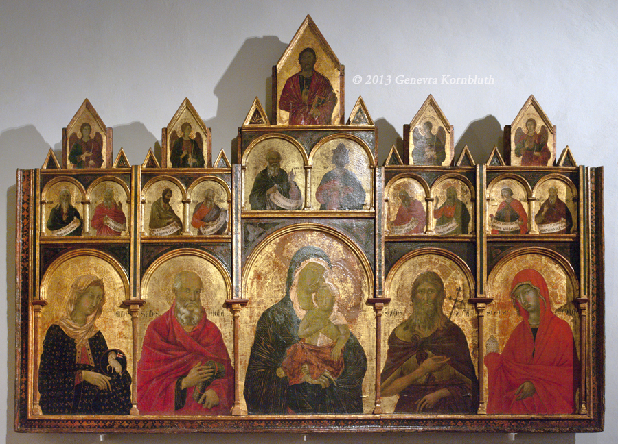Virgin and Child with angels, Old Testament figures, and saints, Duccio workshop: Ugolino?, 1312-19, SPN 47. This work has its own page.