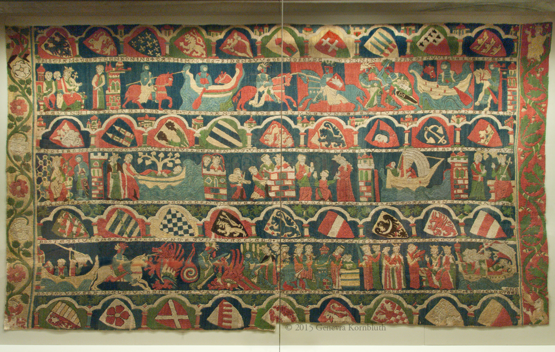 Tristan embroidery, wool on linen, c.1300-25, WIEN Ha 1, WienMus, which has its own page