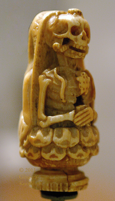 toad, worms: Memento Mori bead poss. from a rosary, ivory, c.1500 France or Flanders, PMA 2007-133-1. This object has its own page.