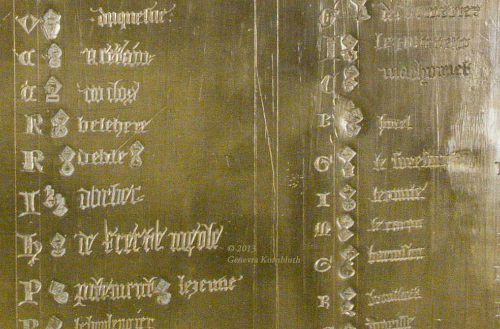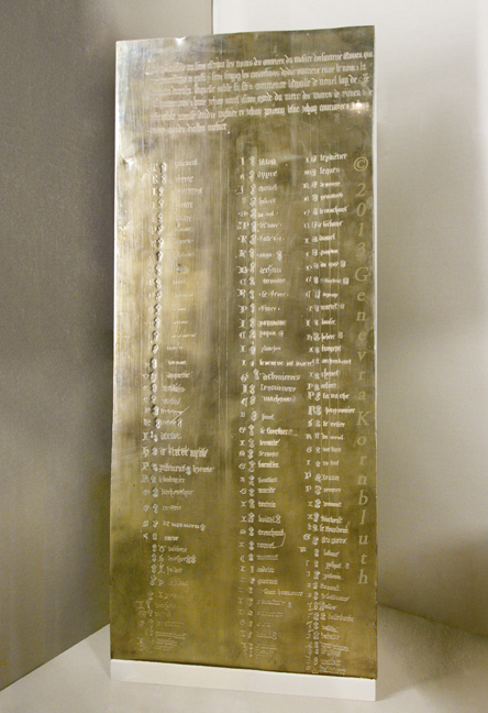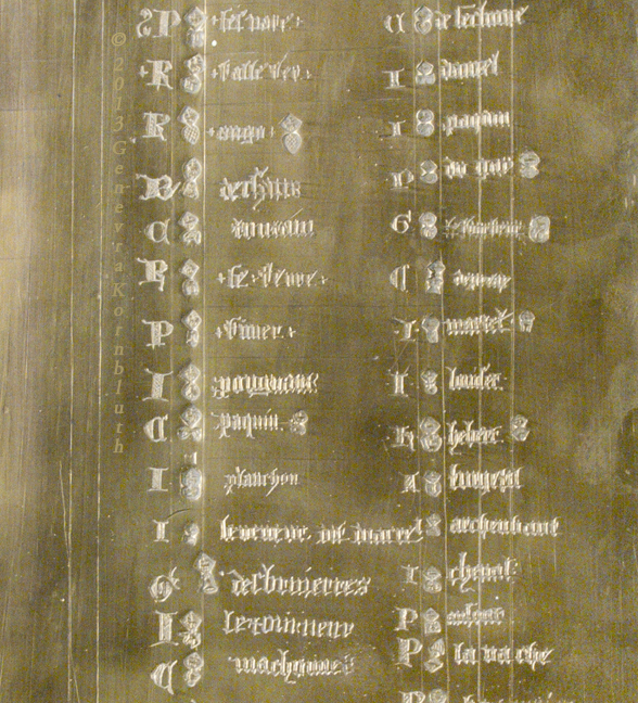 Historical Archive: Hallmarks plaque copper panel, Rouen 1408 Musée de Cluny, Paris, Cl. 3451