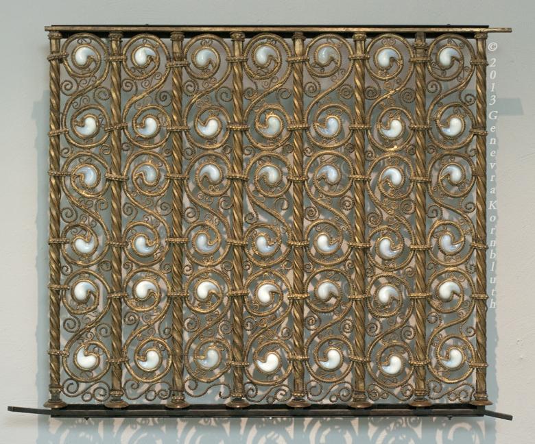 balustrade portion from the third floor stairwell, gilt metal and opalescent Favrile glass 1890-91, UMMA 1986.146.6