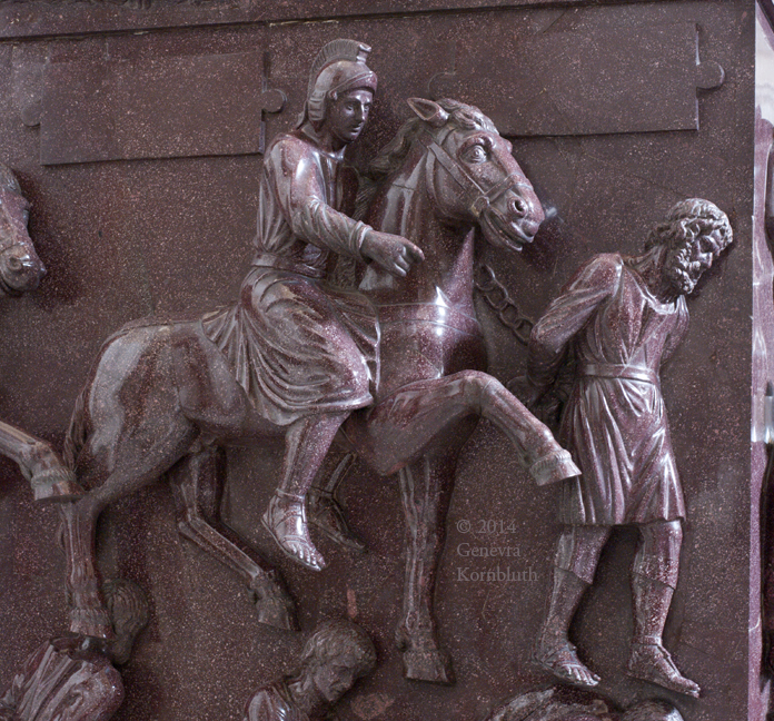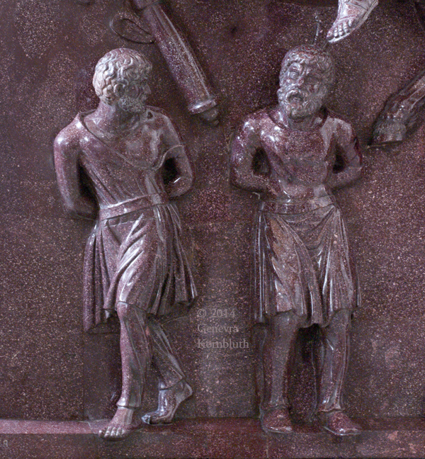 barbarian prob. fr. sarcophagus Helena, slight angle from below, porphyry, 4th c., V&A A.102-1956