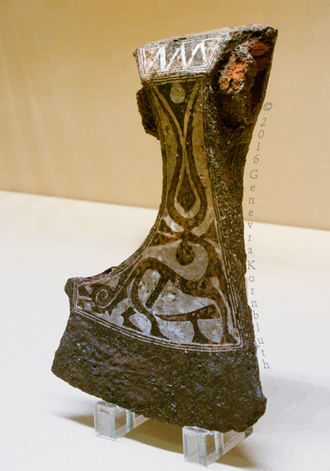 ceremonial axe with elk fr. Olen'-Kolodez' mound 7, iron/silver, ulus of Jochi or Golden Horde c.1300, Hermitage GIVO-4/1996