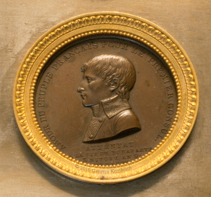 plaque with hair of Napoleon: Henri Auguste, bronze medallion Attentat á la vie de Bonaparte