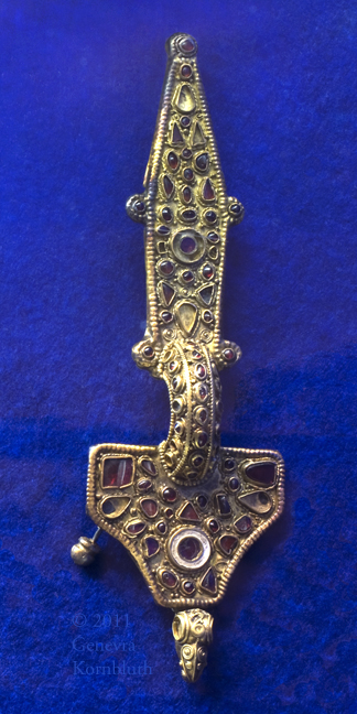 fibula, gilt bronze/garnet, 6th c., Lejre 6150PX256. For another view see Lejre.