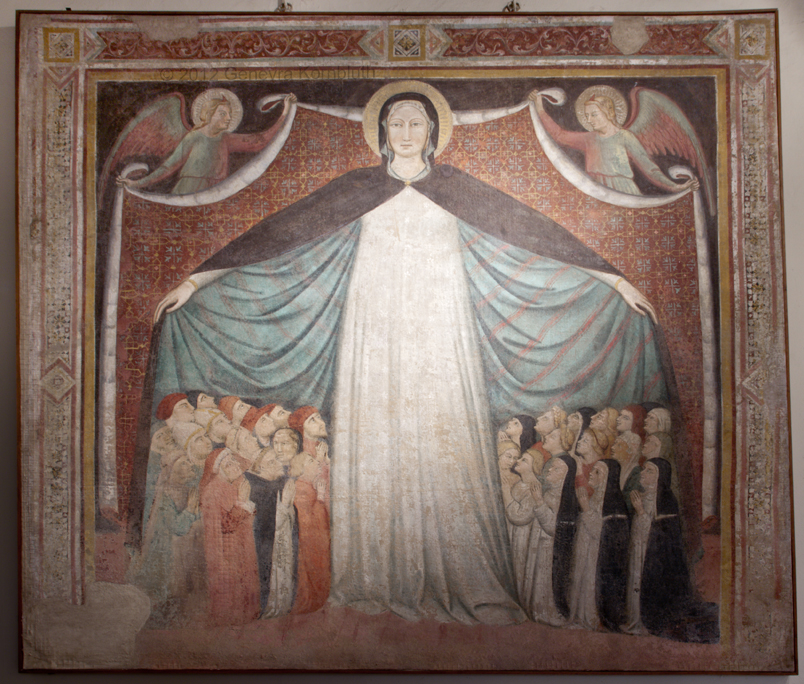 Madonna of Mercy, Giovanni di Agnolo di Balduccio c.1414, fresco, Arezzo MS. For detail see Arezzo Museums.