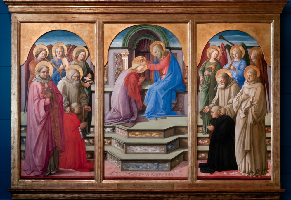 Filippo Lippi, Coronation of the Virgin panel, Marsuppini altarpiece, 1450s, Vat. loan to Arezzo MS. For details see Arezzo Museums.